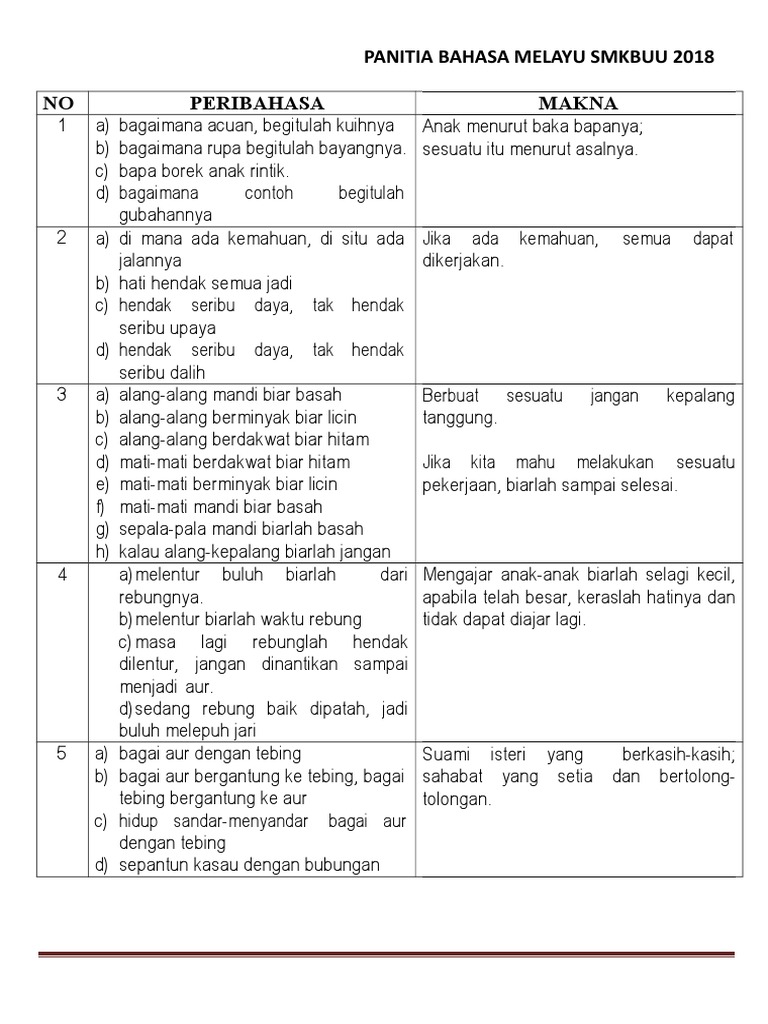 Senarai Peribahasa Dalam Buku Teks Tingkatan 4
