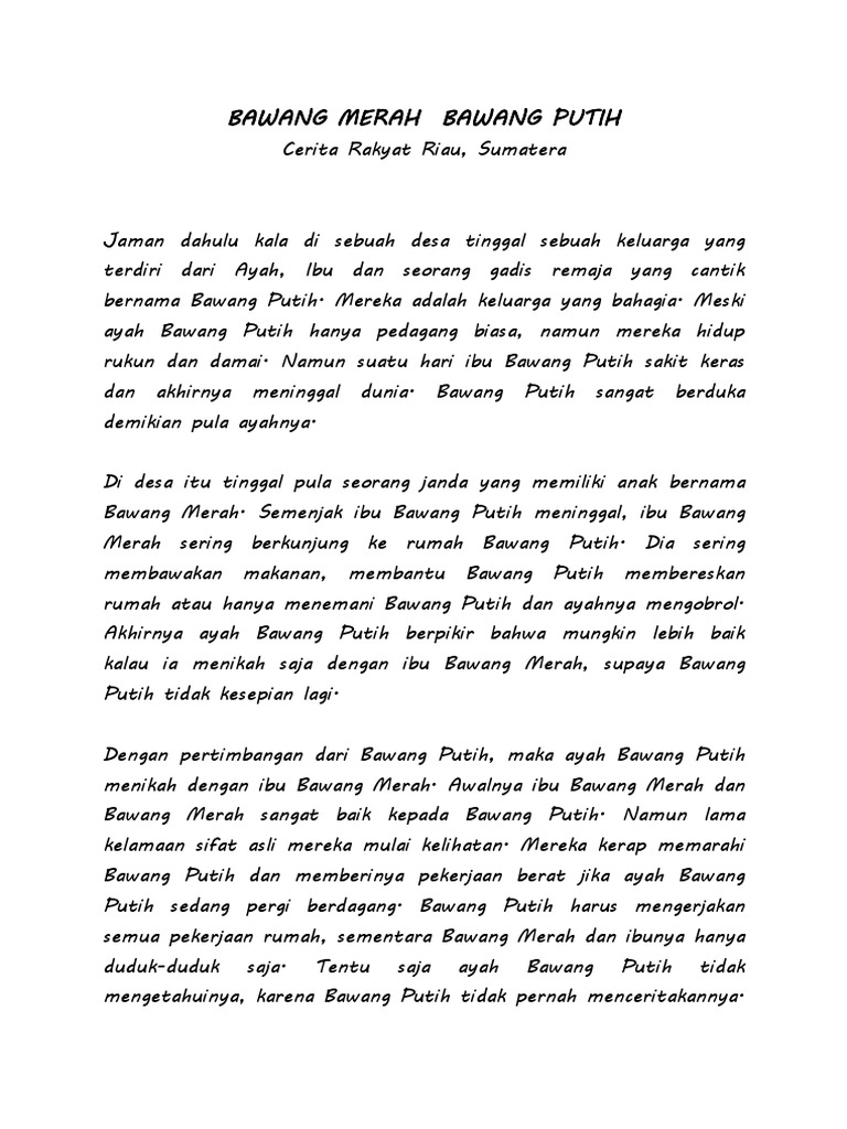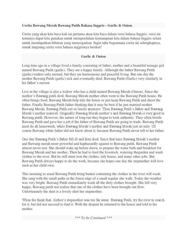 Cerita Rakyat Singkat Bawang Merah Dan Bawang Putih Dalam Bahasa Inggris Cerita Rakyat Rakyat Bahasa