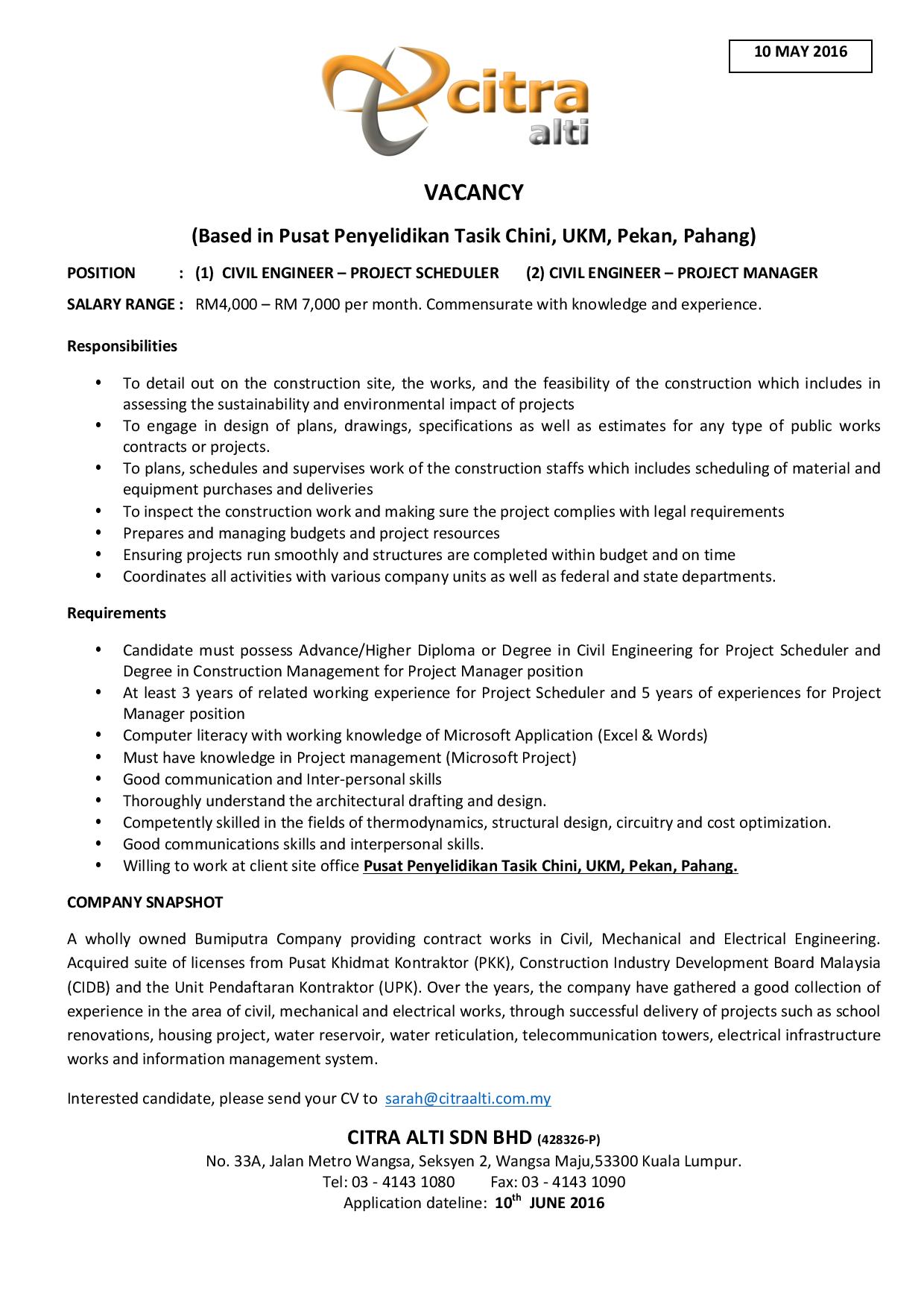 트위터의 Jobsmalaysiapahang 님 Jwtn Kosong Di Syarikat Citra Alti Sdn Bhd Rujuk Iklan Utk Info Lanjut Kuantantv