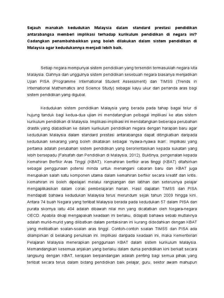Sejauh Manakah Kedudukan Malaysia Dalam Standard Prestasi Pendidikan Antarabangsa Memberi Implikasi Terhadap Kurikulum Pendidikan Di Negara Ini