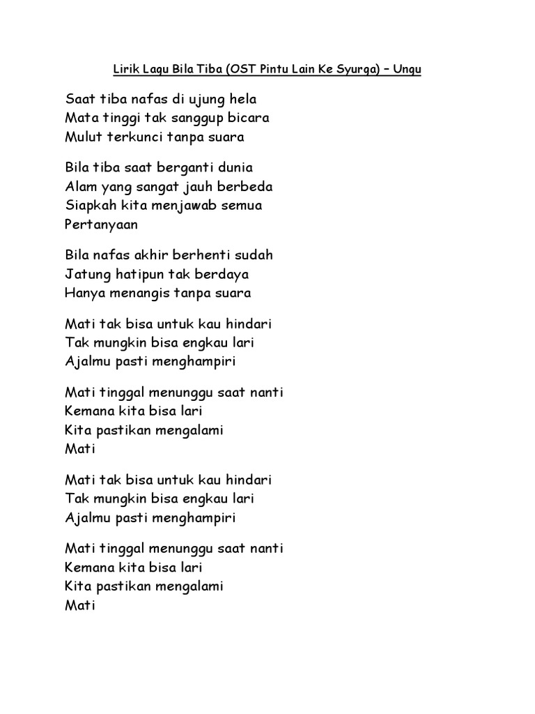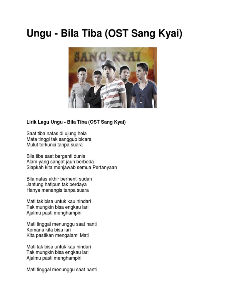 Ungu Lirik Lagu Bila Tiba Ost Sang Kiai Lirik Chord