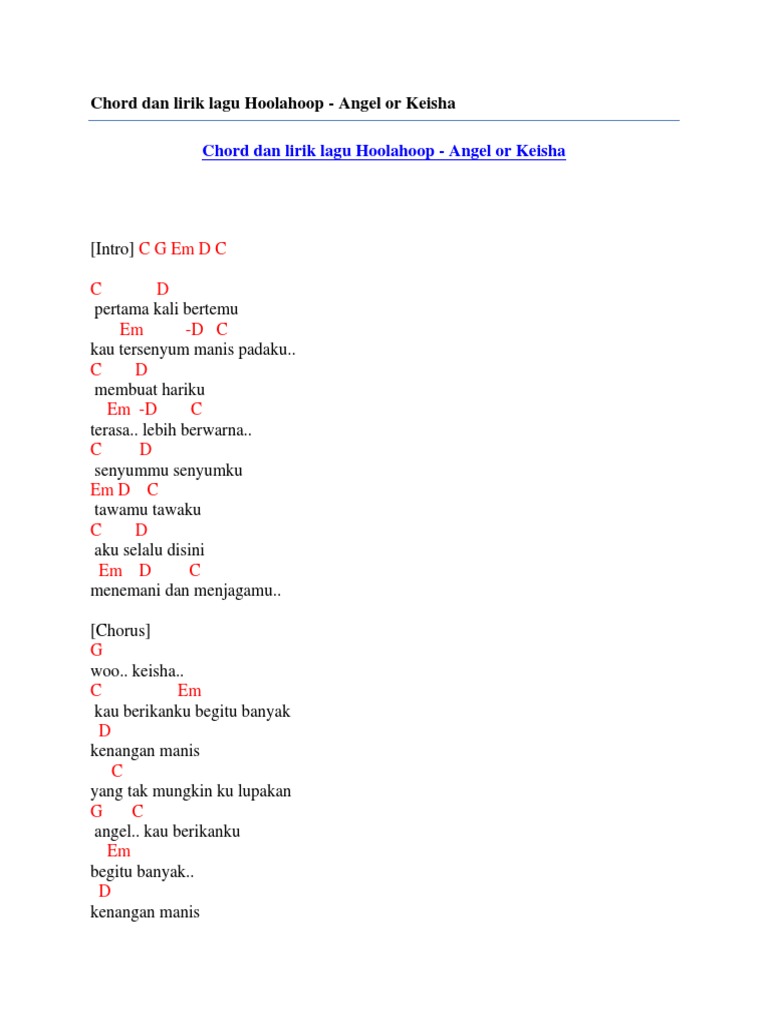 Chord Dan Lirik Lagu Hoolahoop Angel Or Keisha