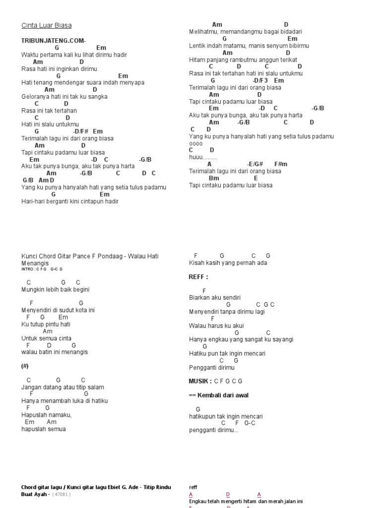 Chord Kunci Gitar Dan Lirik Yang Pertama Kali Pance Feat Ance Yang Pertama Di Dalam Hidup Ini Tribun Solo