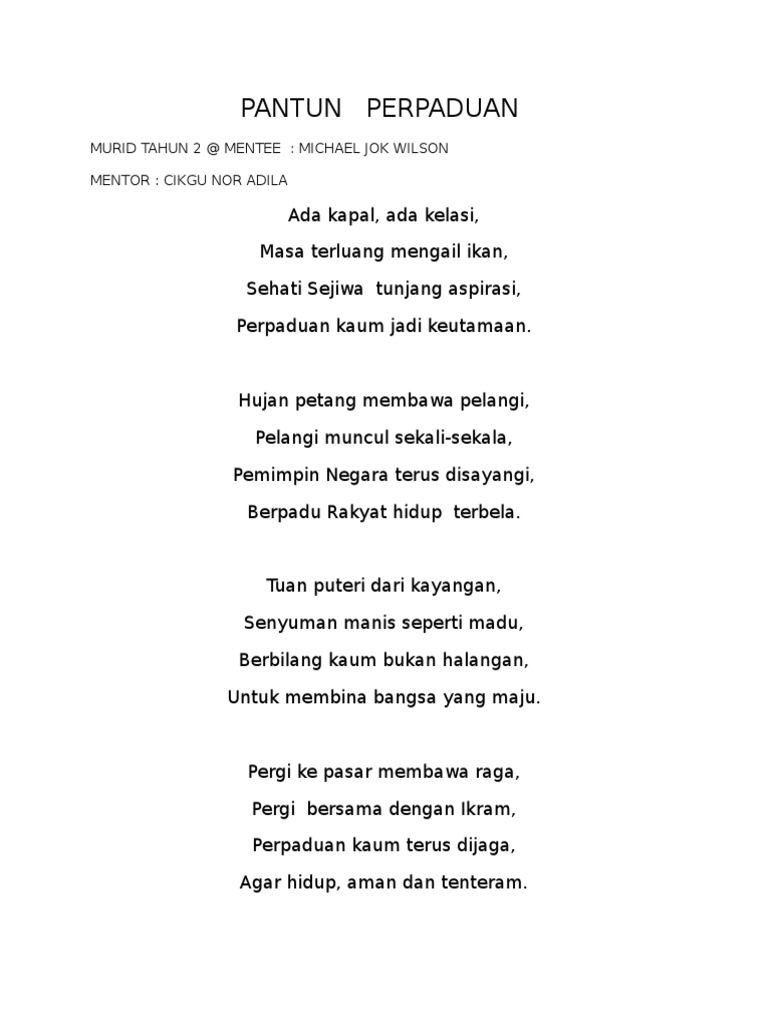 Contoh Karya Pantun Tahun 2