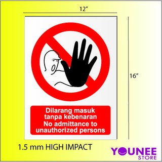 Prohibition Sign No Admittance To Unauthorized Persons Dilarang Masuk Tanpa Kebenaran Shopee Malaysia