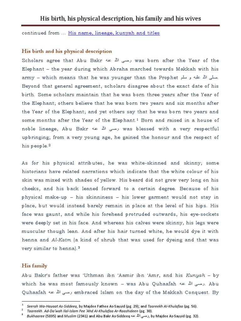 His Birth His Physical Description His Family And His Wives Muhammad Umar