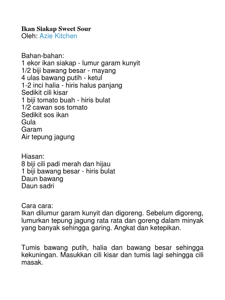 Resepi Ikan Siakap Sweet Sour Azie Kitchen Resep Masakan Khas
