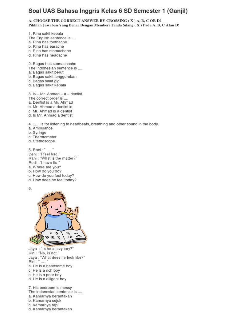 Soal Uas Bahasa Inggris Kelas 6 Sd Semester 1 Docx Indonesian Rupiah Currency