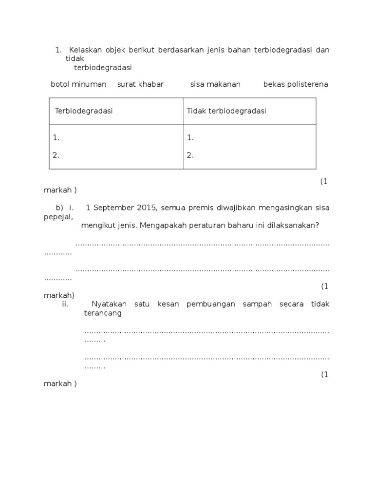 Sains Tahun 4 5 6 Kssr Tahun 6 Bahan Buangan
